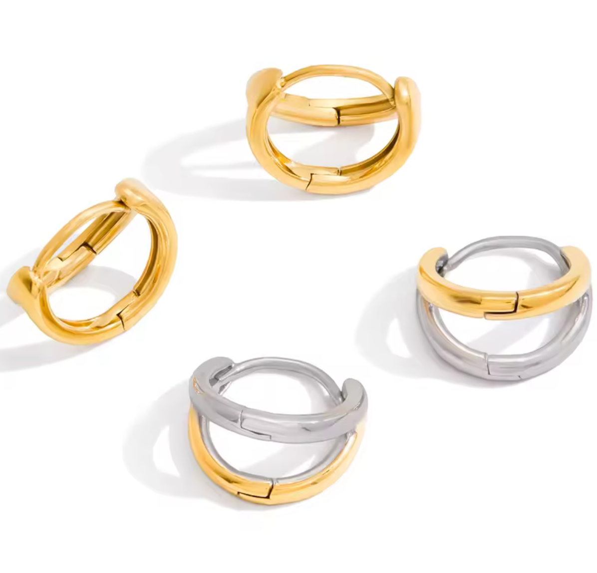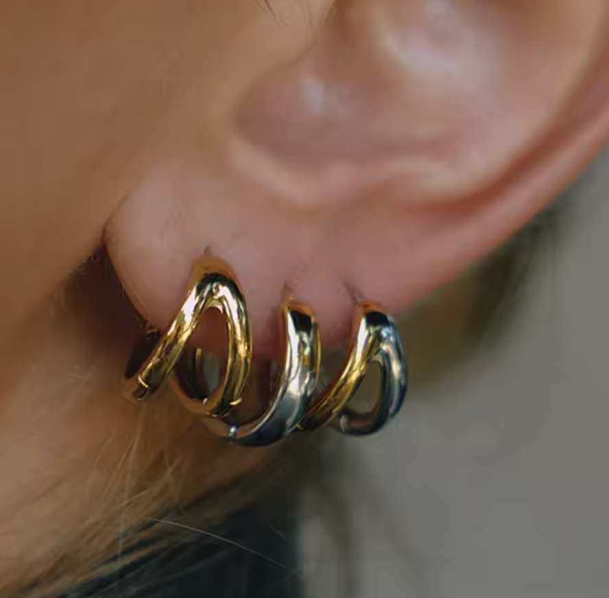Criss Cross is a perfect Huggie Hoop. This is the one you needed. It mixes silver and gold. It is a slim light profile. The light criss cross gives the earring movement.