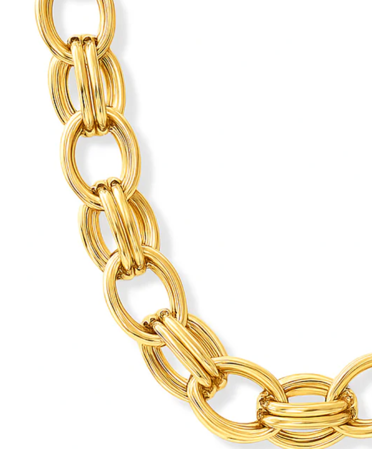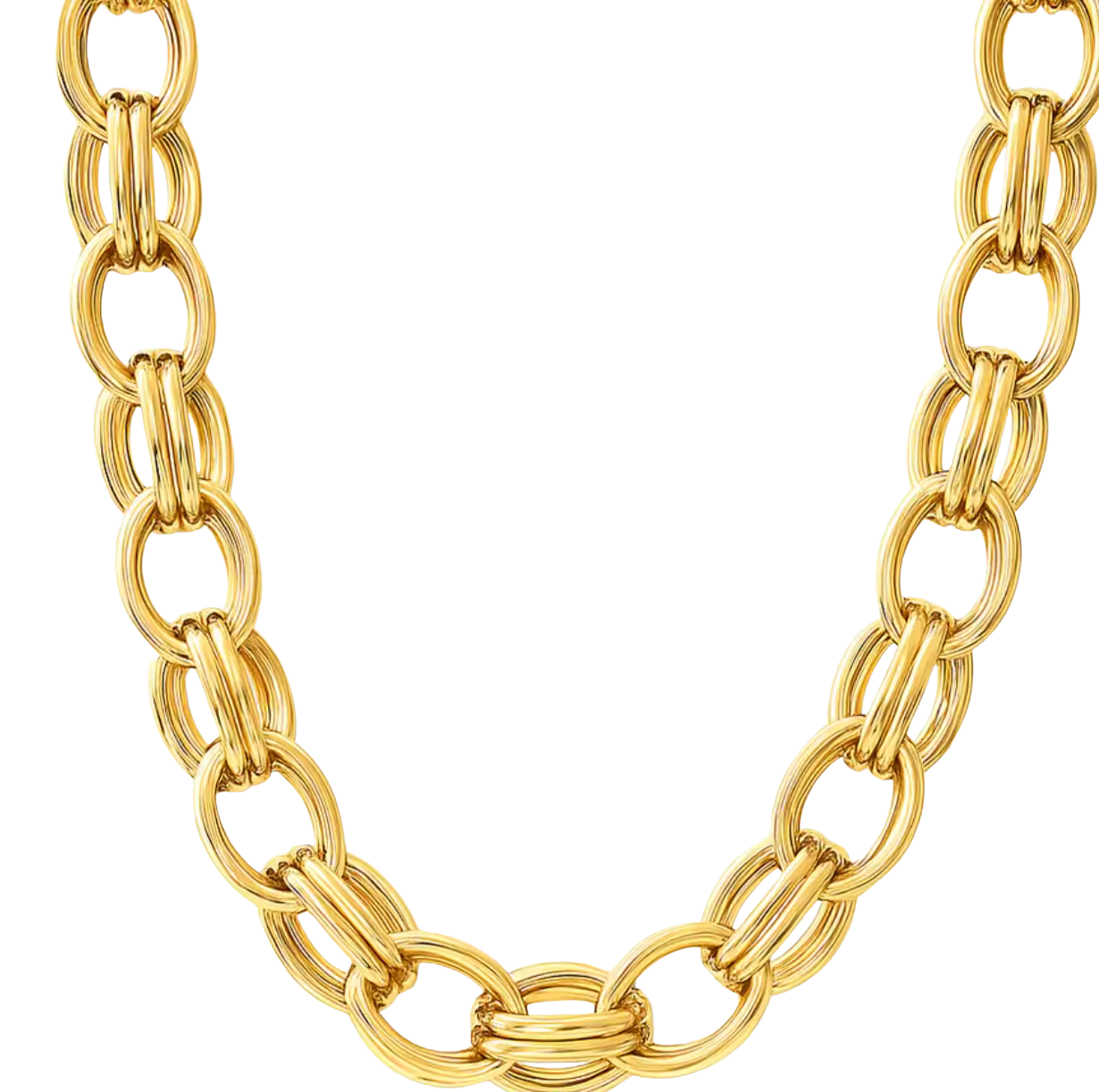 Beau is our largest casted chain necklace. It is a high profile and curved standing link chain. Hand assembled. Beau is Beautiful and a bit masculine, It is playful, maximalist and so so chic.