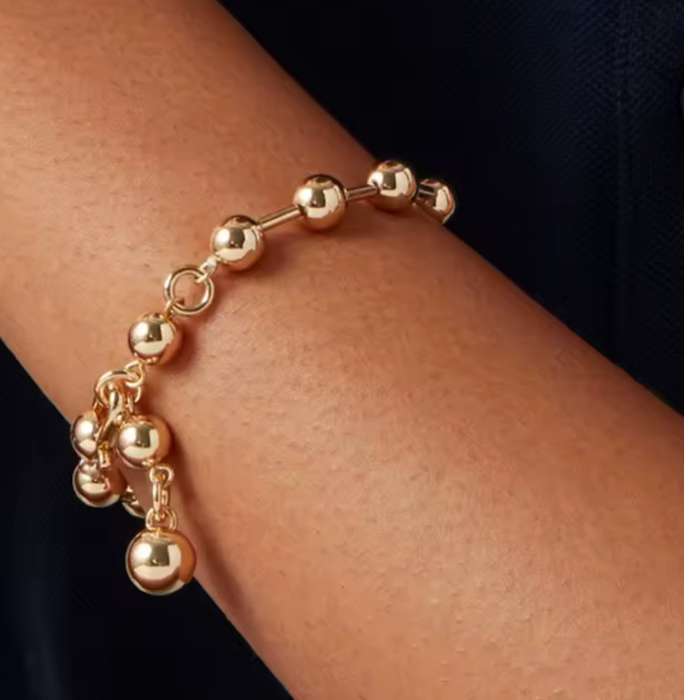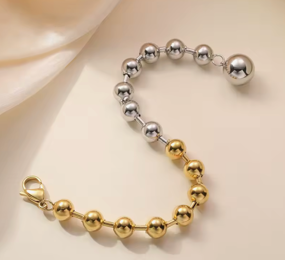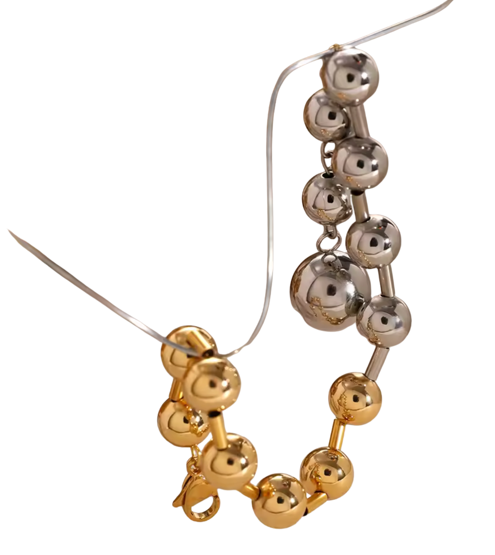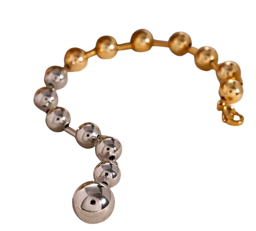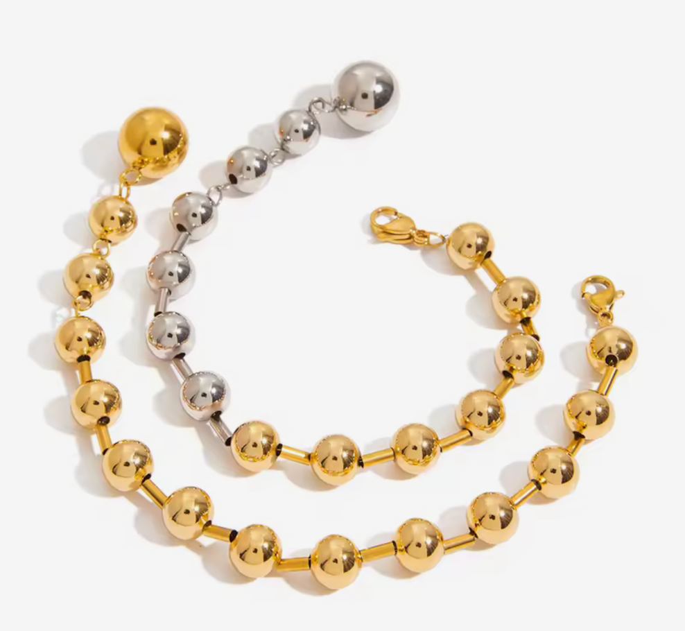 In your Sphere is a mix of our beaded bracelets and a line bracelet. In your sphere mixes the beads and bugle bead. With a large lobster clasp. The beads are stainless steel. Waterproof comfortable