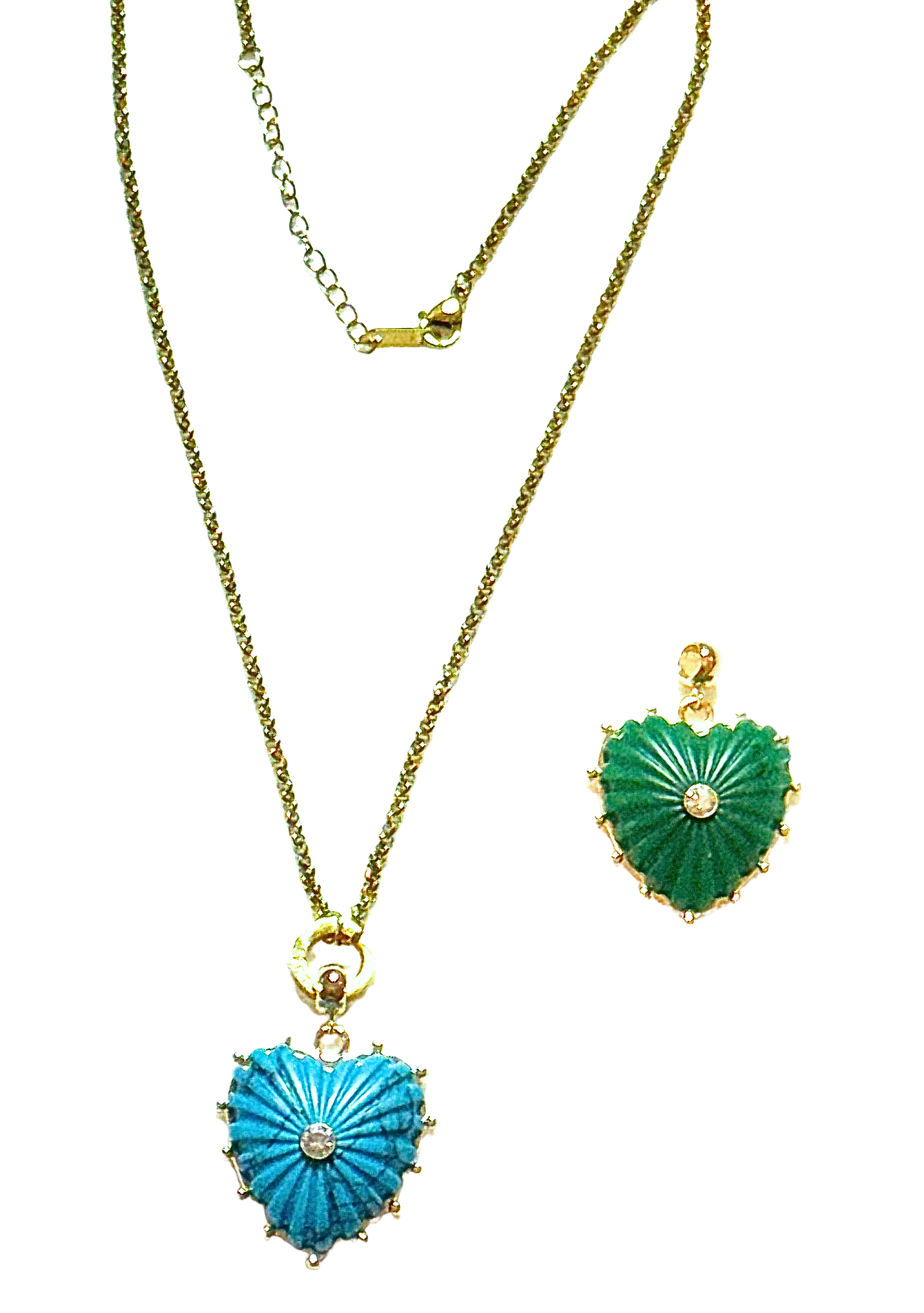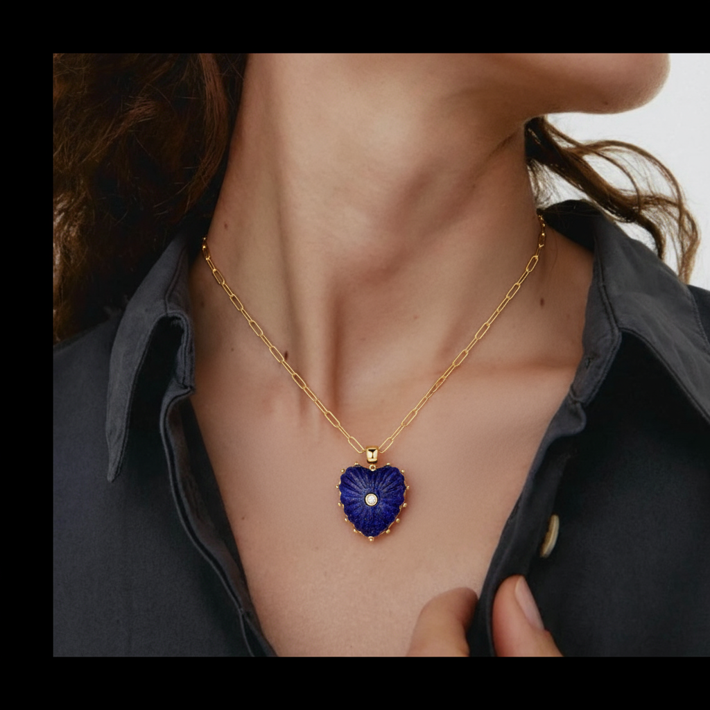 Let Your Heart Lead is the perfect Gemstone Radiant Sun Ray Cut. This is a 1.5" pendant set on steel. PVD gold 14K Plated. Radiant Sunray Cut gemstone heart with CZ bezel set centre. The Hearts Eye. Your core. Your centre.