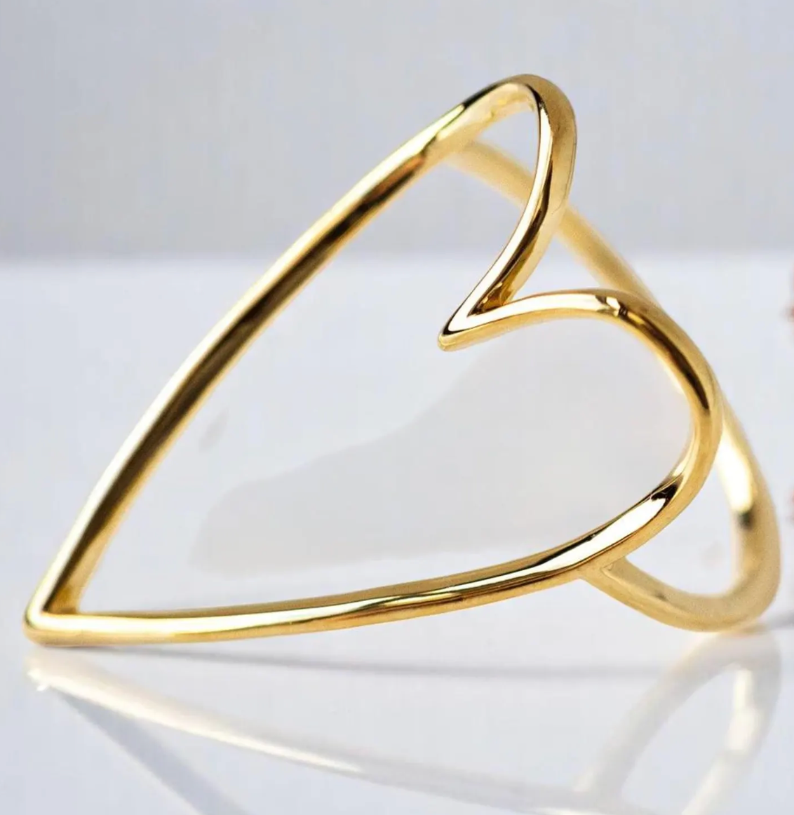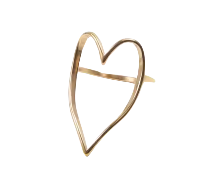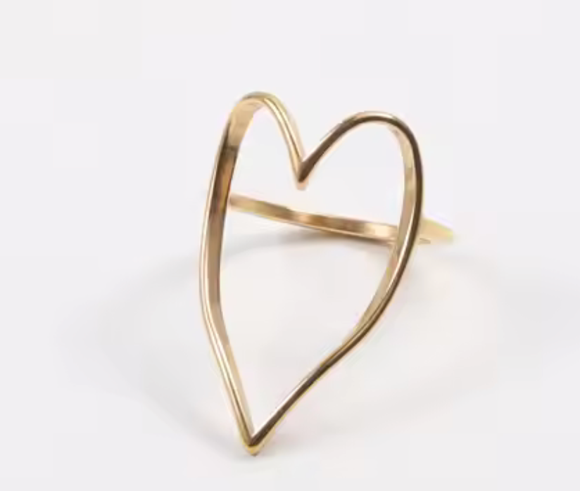 Amour Open your Heart Ring. The Open wrap around your finger ring is not small but it is dainty on the finger. This is stainless steel and will not tarnish. It is a beautiful hand made organic finish. Steel Tube that is strong and light weight. It is a statement while being the perfect signature piece