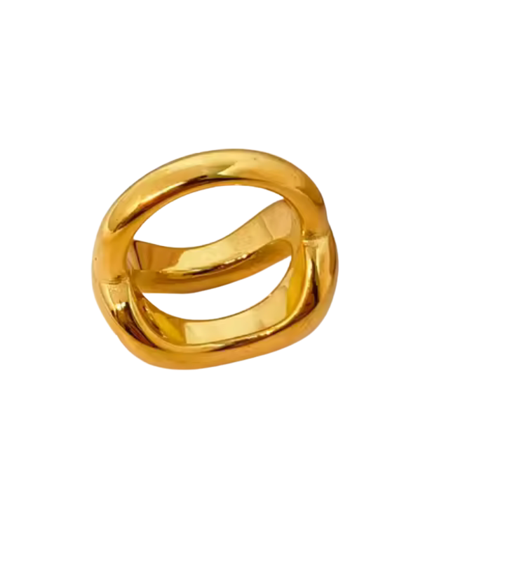 Double Double PVD steel 18K Gold Open Double Waterproof Ring