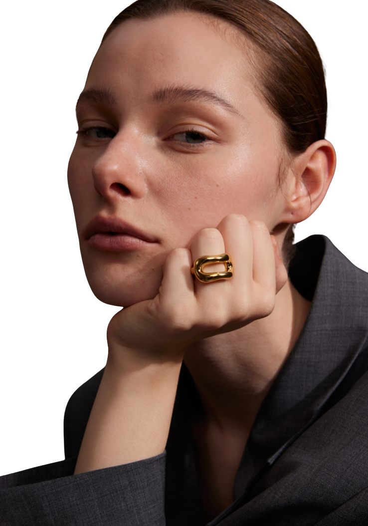 Double Double is a 2 ring effect chubby organic style. We love the easy wear tapered band with the large open face of the ring.