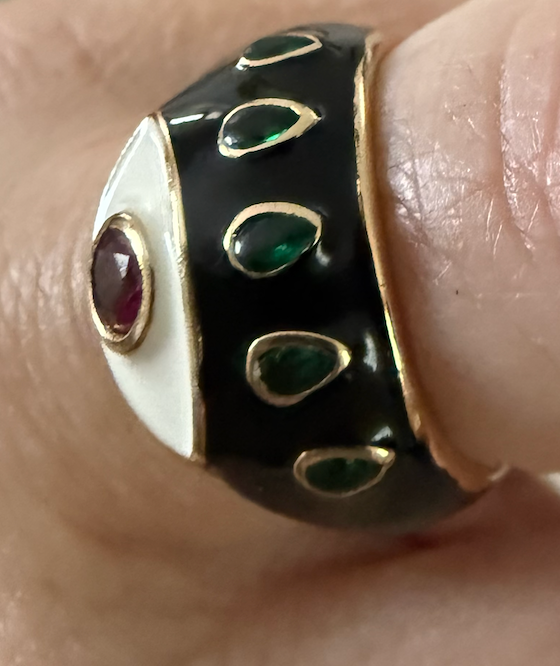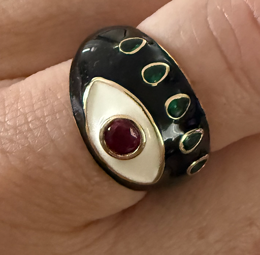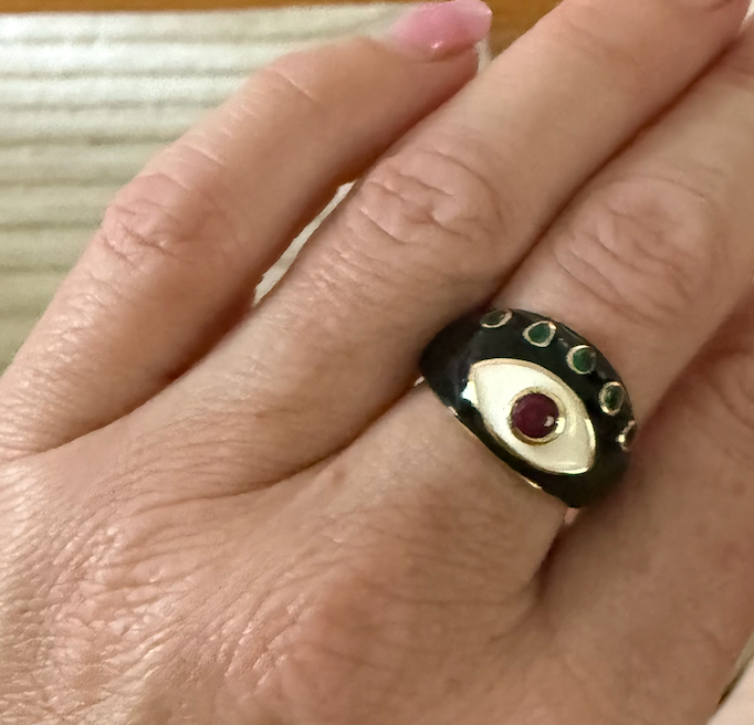 My selfish creation. I love this ring. It is adjustable as I love stacking rings and this one fits easily on all my fingers.