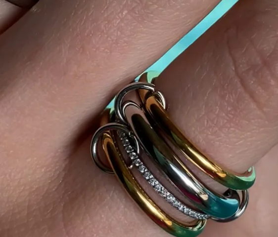 14K yellow gold/ Silver and CZ bands.