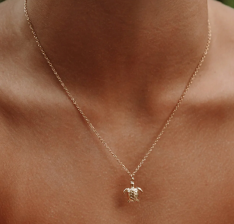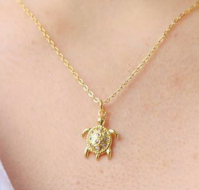 The sea turtle chain is a sweet node to the majestic the talisman of Wisdom, Adaptability, and staying focused and taking your time. Also the representative of the sea and the returning to home. The Sea Turtle necklace is a 1 " pendant made of stainless steel 14K gold plated. Curb Chain 16" with a 2" extender