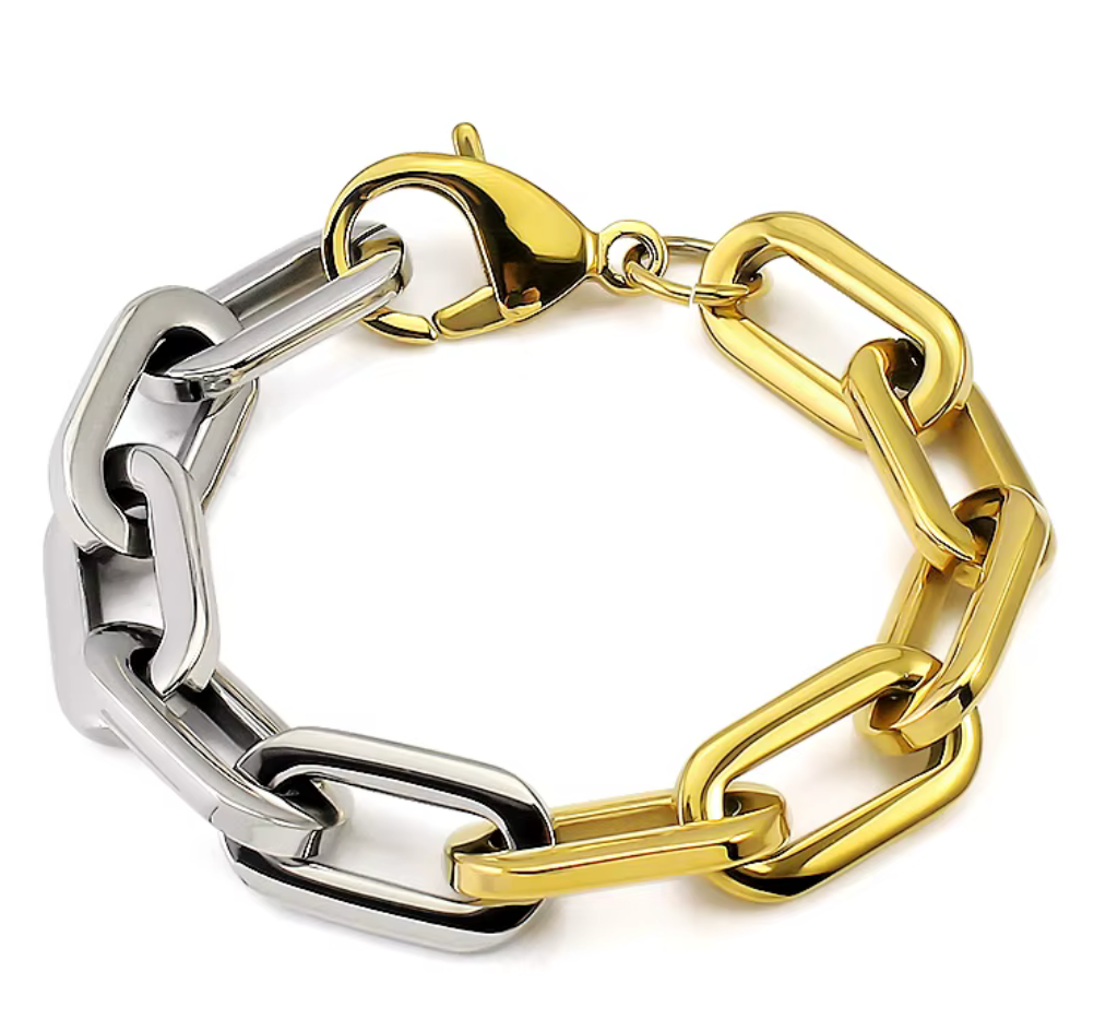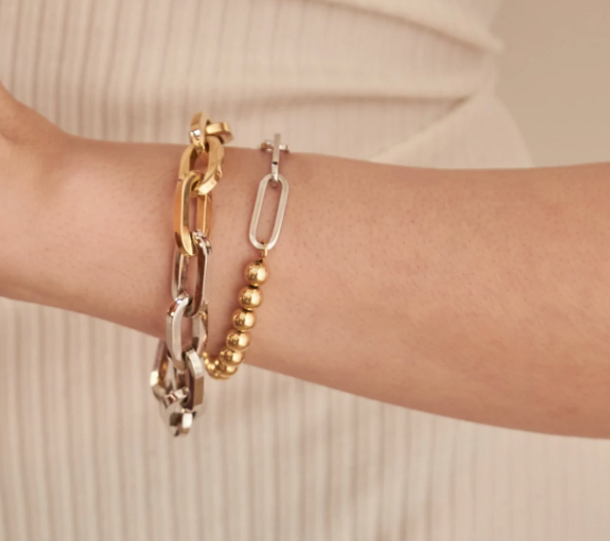 Sloane- Two Tone Steel Bracelet 14K Gold PVD and Silver