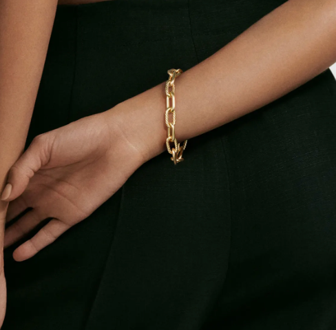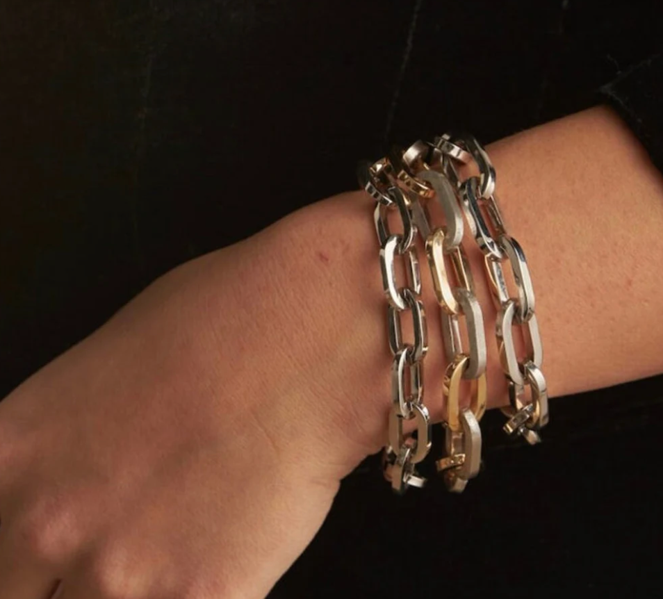 Sloane is our chunk Paperclip Chain. It comes with many ways to wear it and connect it to other chains.