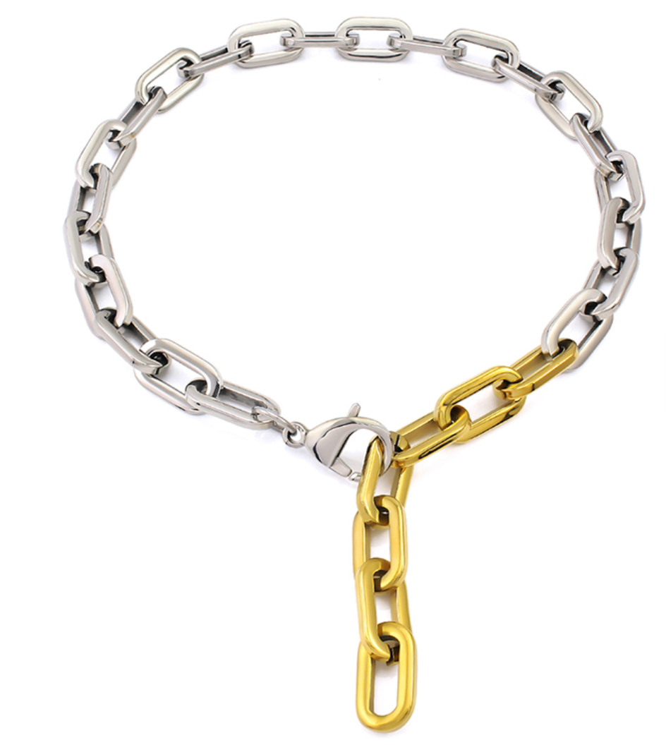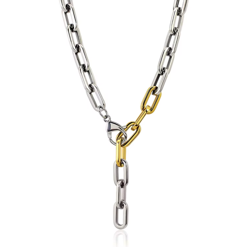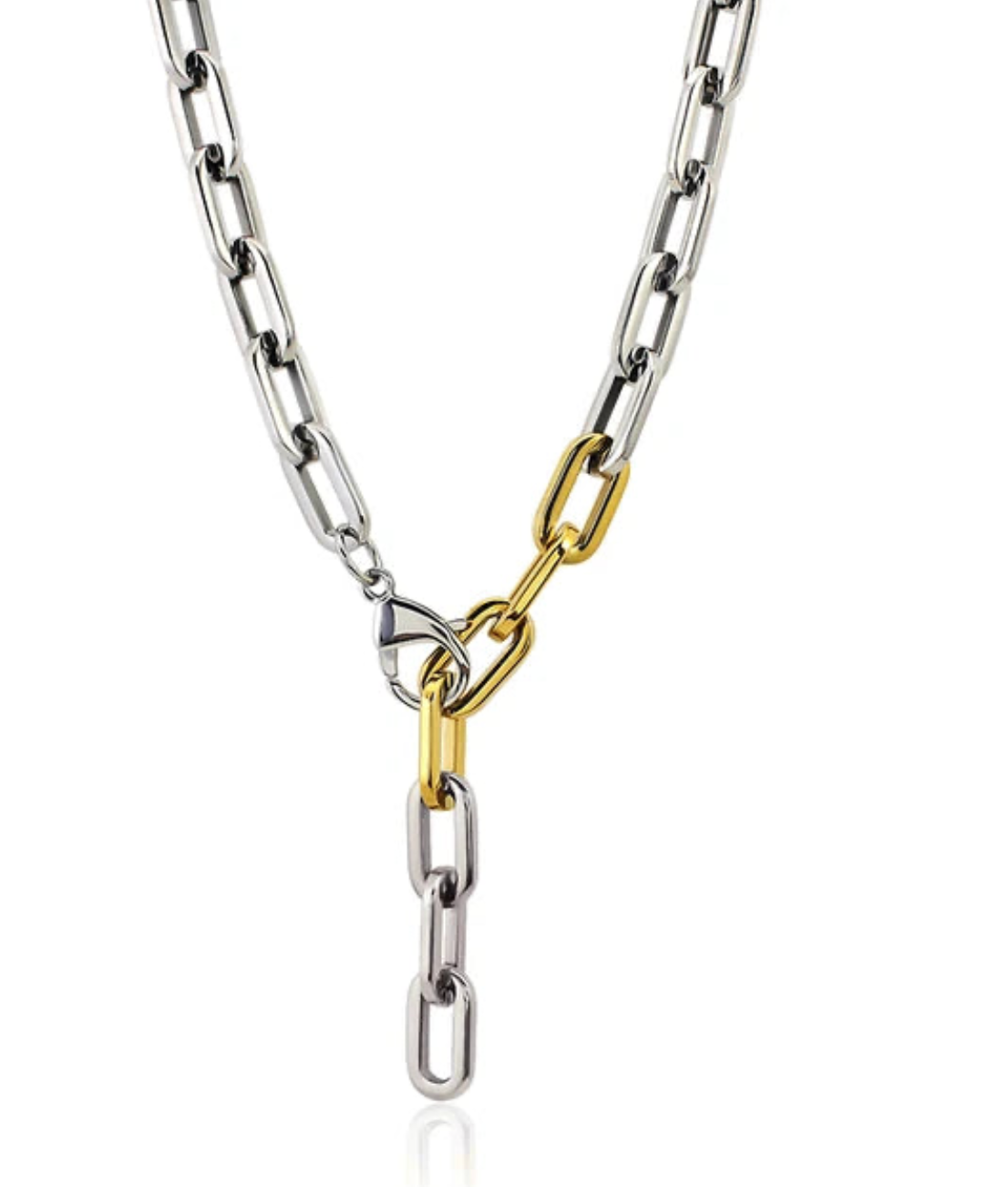 Sloane is our chunk Paperclip Chain. It comes with many ways to wear it and connect it to other chains.