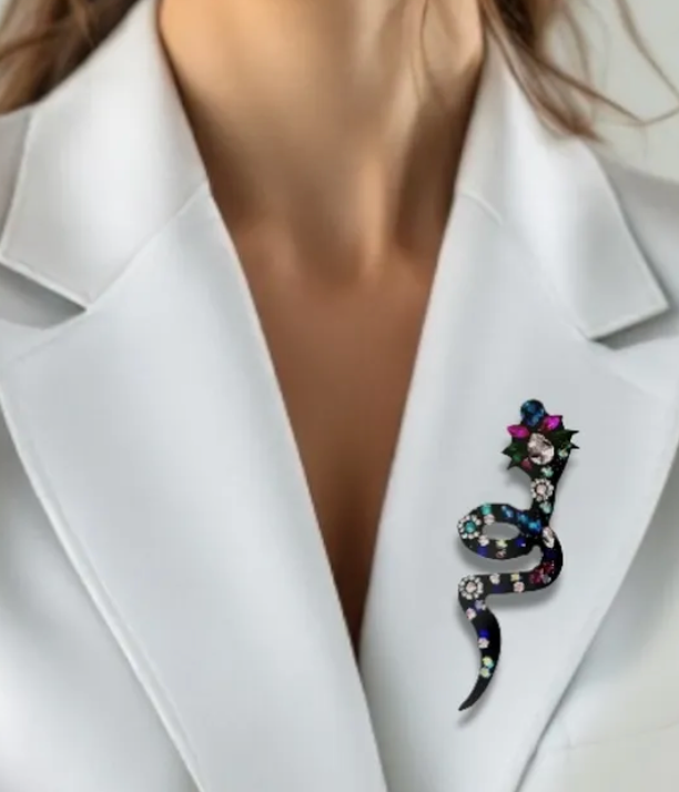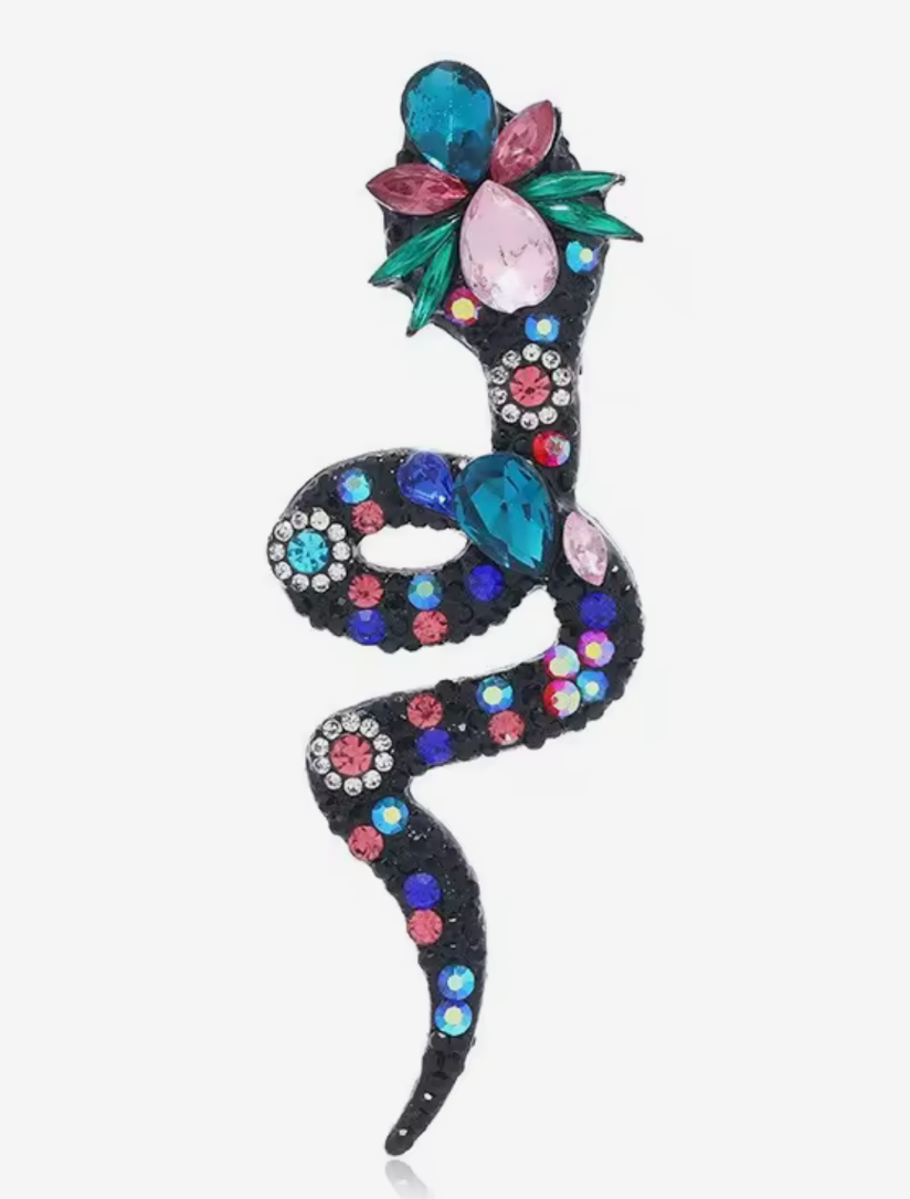 SSSSnake Brooch- Black Diamond and Colour- CZ and Rhinestone