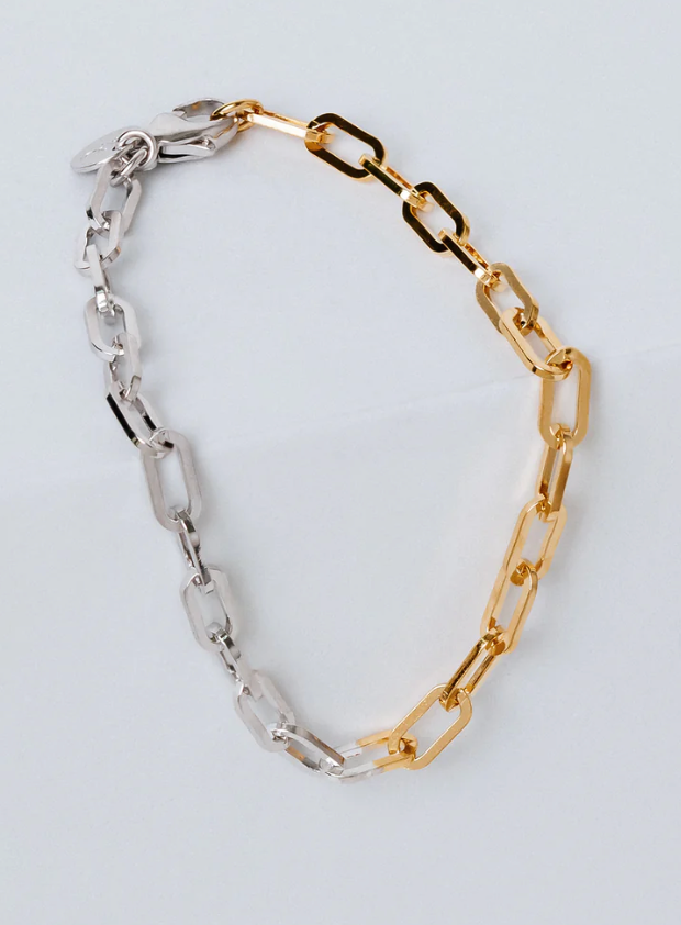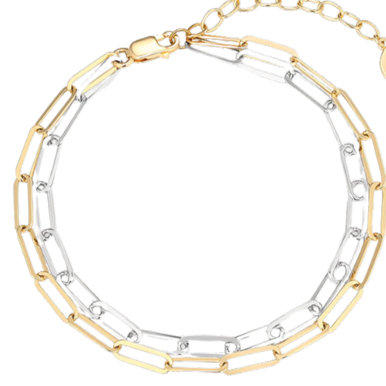 The Stay Golden is a mix of the classic Paperclip and Figaro. The patter of 3 smaller open links.