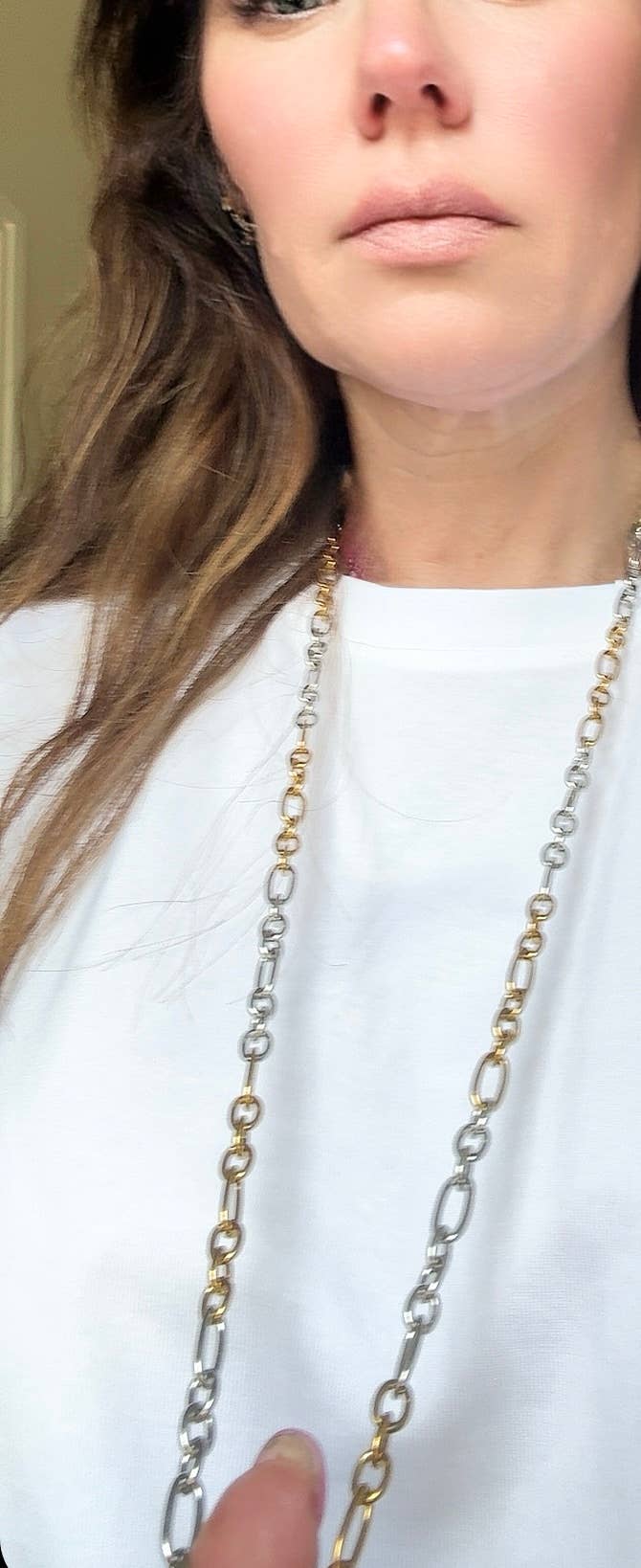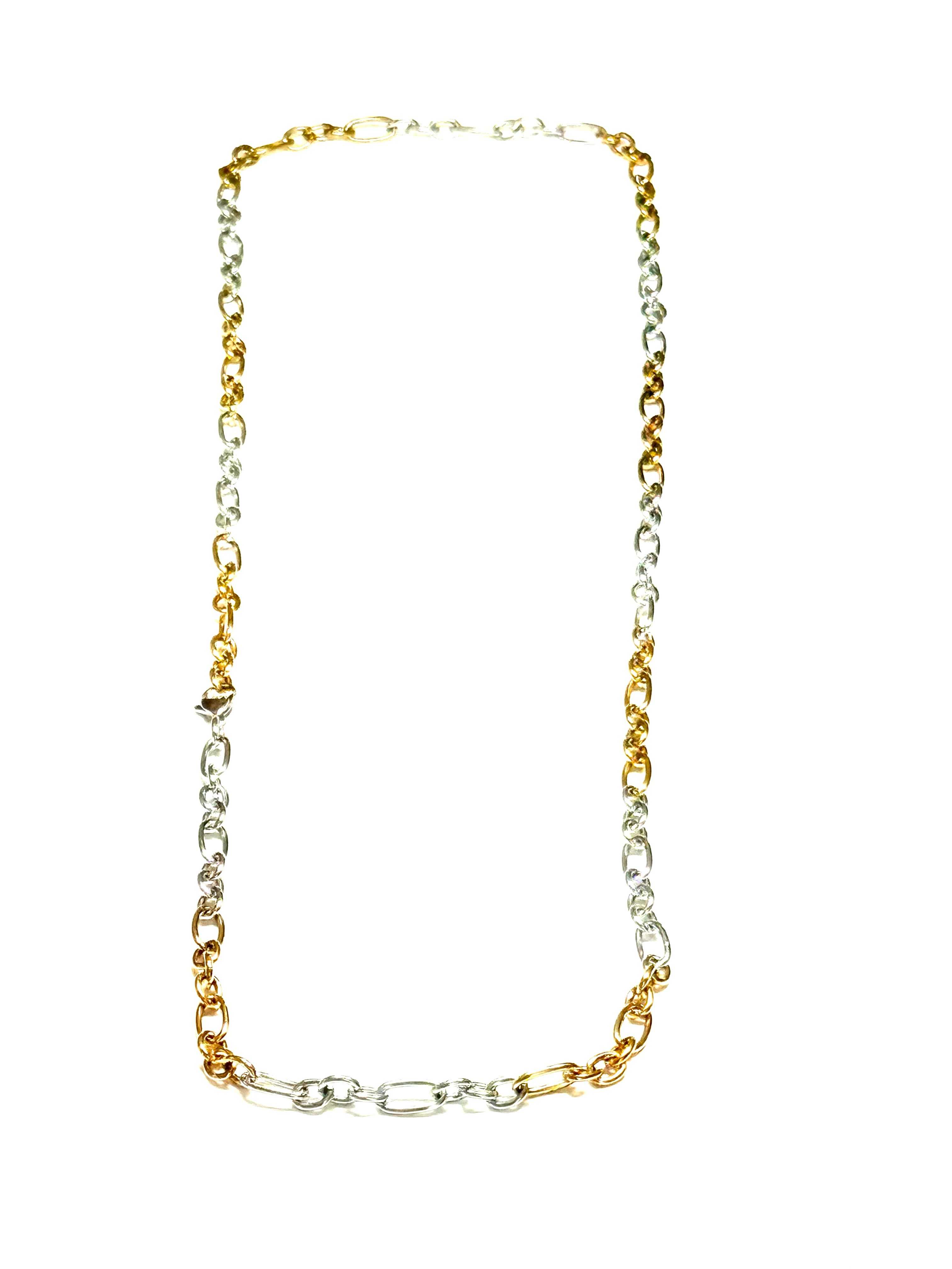 The Stay Golden is a mix of the classic Paperclip and Figaro. The patter of 3 smaller open links.