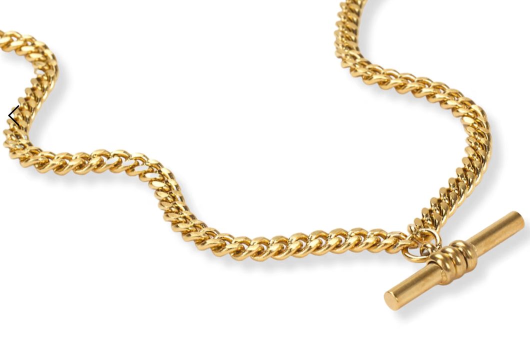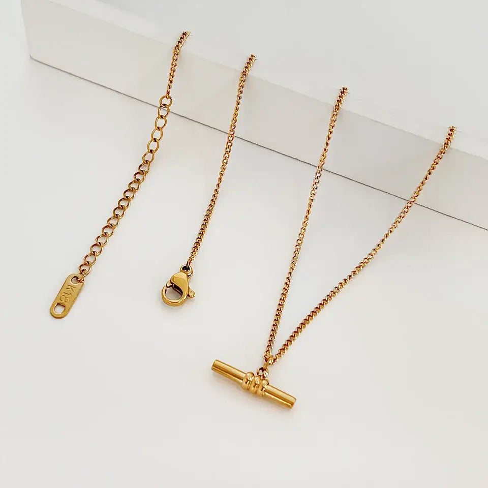 T Bar Toggle Steel 14K Gold Necklace