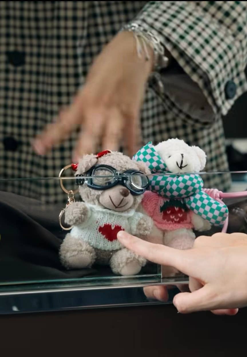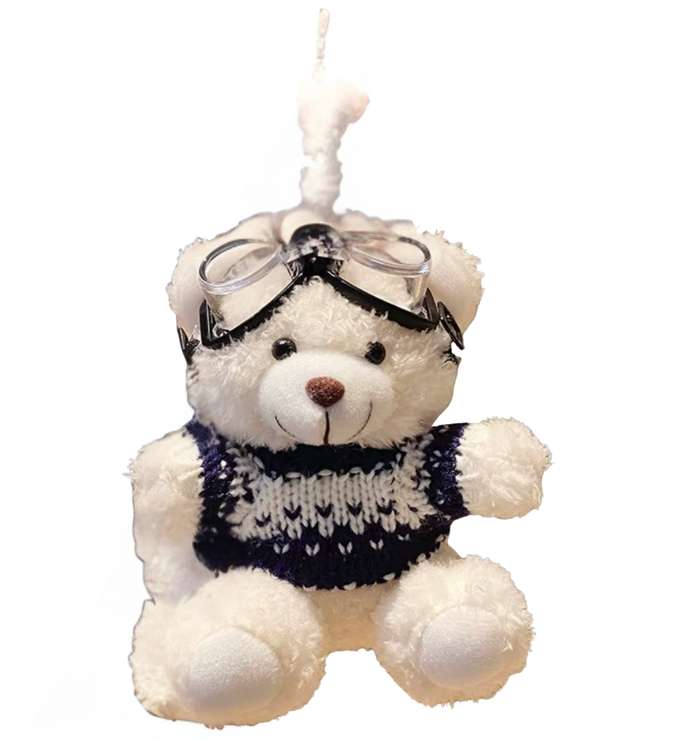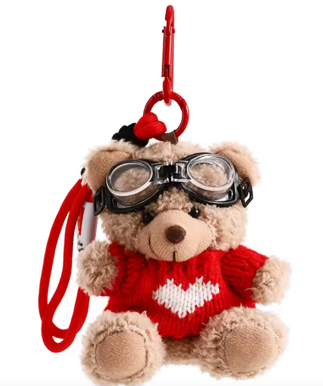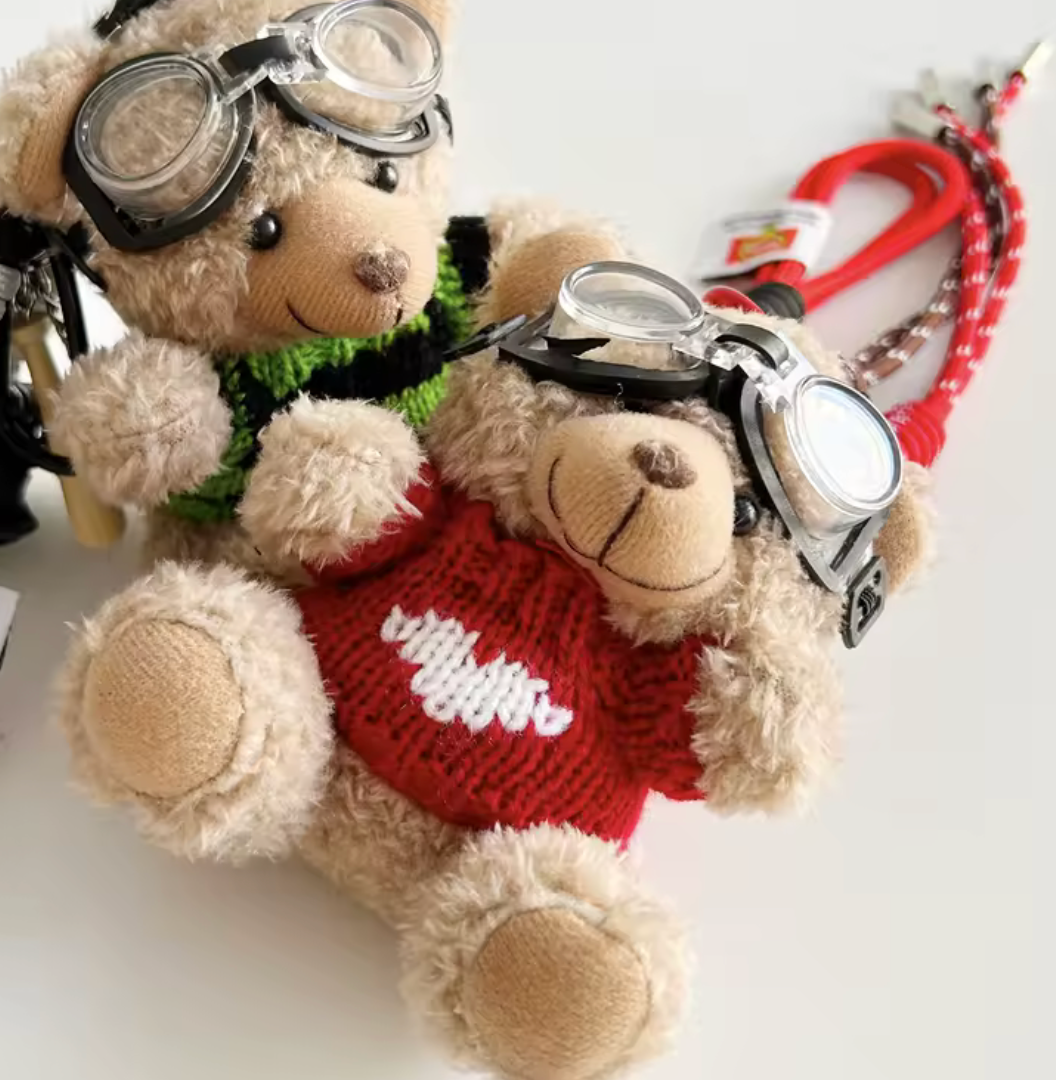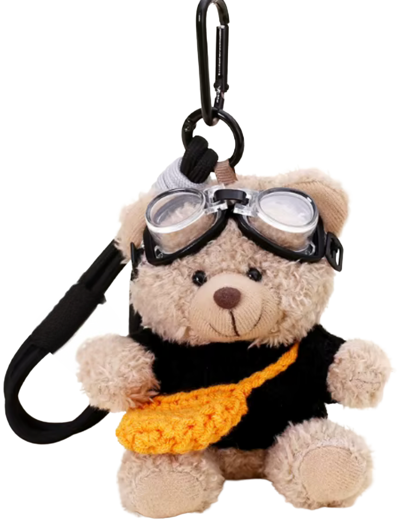 These are cotton, acrylic plush bears with rope wrist straps for easy application and adjustable length. As well as key charm clips.