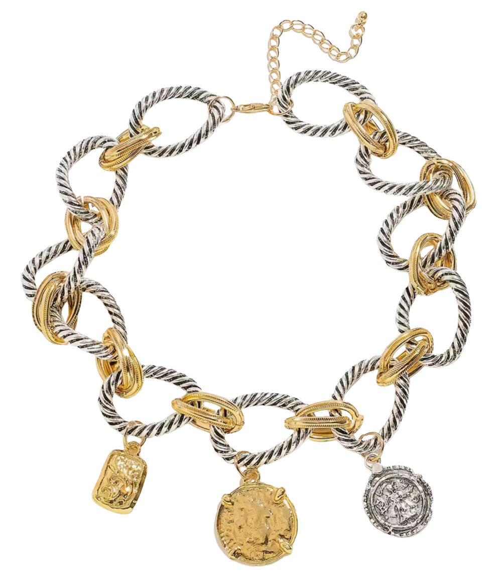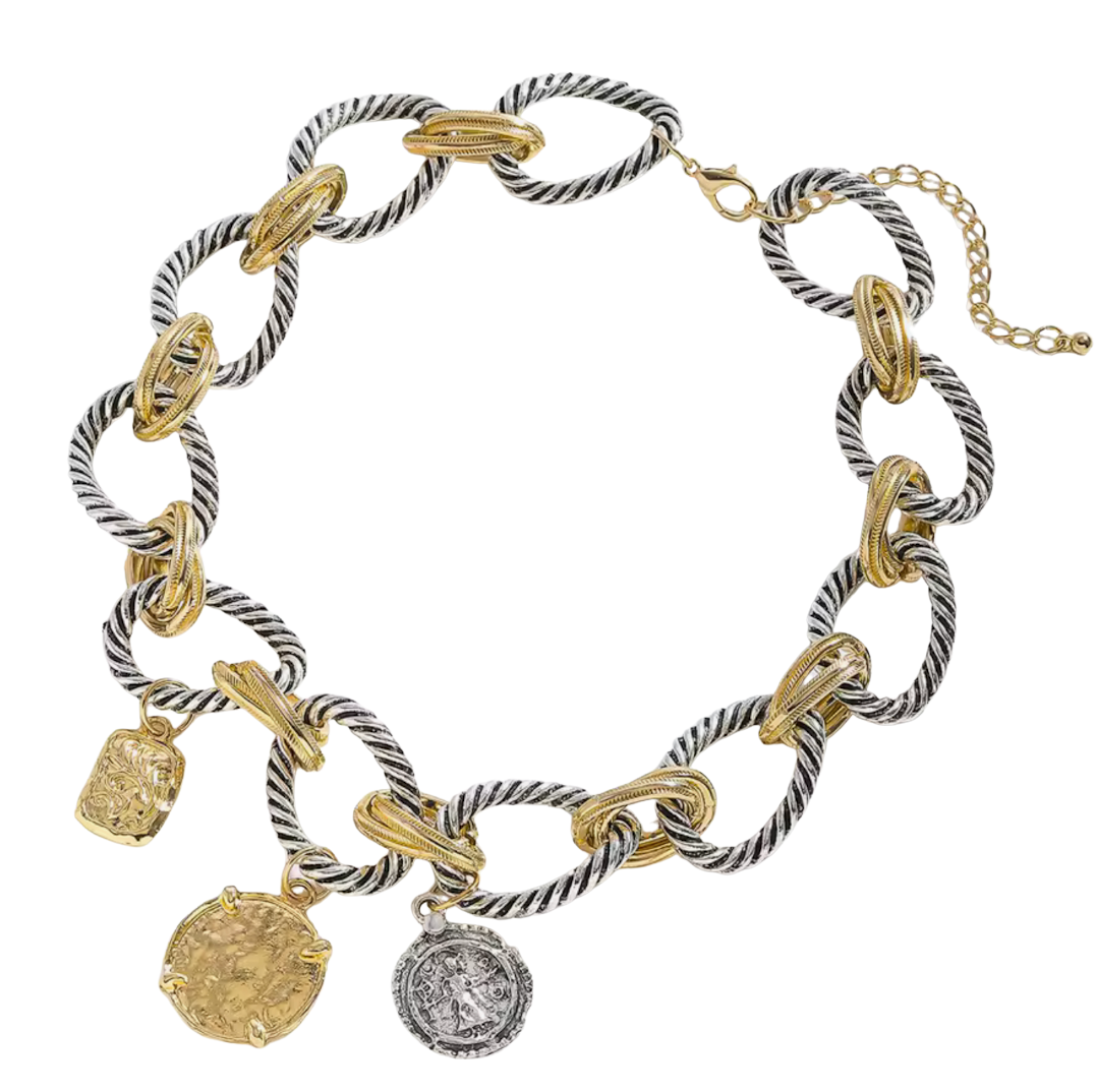 Twisted Harvey is a mix of antique and modern. This is made of Brass, Bronze and Steel. Twisted steel Rope carved Chain links in silver antique added to make the carved out relief show.