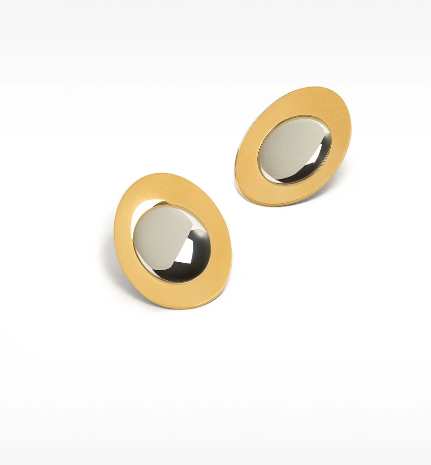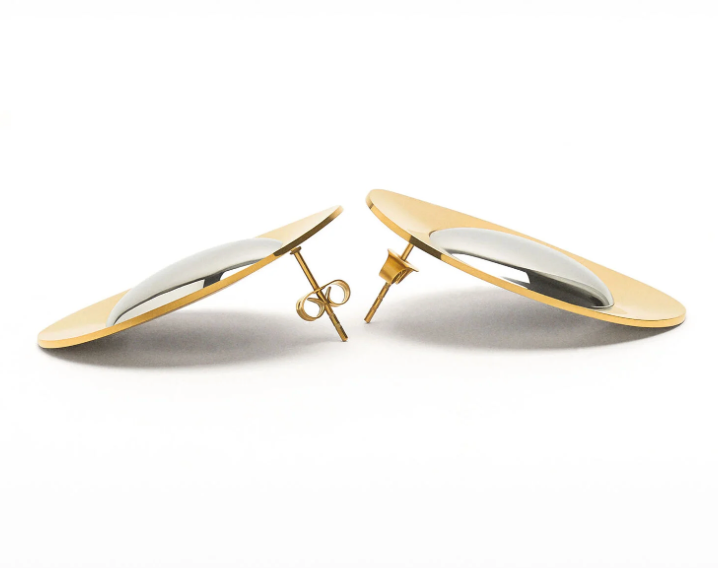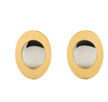 Two Tone Bi Colour Gold and silver Oval Disk Stud Earring